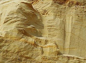 fliegt zu einem Sandsteinmassiv, nicht weit von unserem ersten Landeplatz entfernt. Der Wind hat das weiche Gestein abgeschliffen. Deutlich sieht man die unterschiedlich verlaufenden Schichten des weichen Sandsteins - zu Stein gepreßte Dünen. Es scheint, als sei dieses Land schon seit vielen Millionen Jahren nie etwas anderes gewesen, als Wüste. |