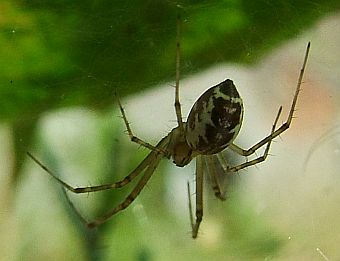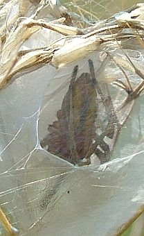 Bild erkennt man, daß sie kopfunter in ihrem Netz hängt, wie das eben in ihrer Verwandtschaft so üblich ist. |