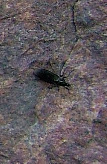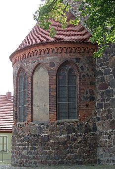 nicht in meinem Garten, sondern an der Marienkirche in Ziesar. Auf den Steinen, aus denen diese Kirche erbaut ist, entdeckte ich kleine, schwarze Fliegen und in den Mauerlücken die Bauten von Trichterspinnen. Natürlich wollte sich keine Spinne blicken lassen. Ich wollte wenigstens ein Bild von einem der Gespinste machen. Genau in diesem Augenblick setzte sich eine vertrauensselige Fliege auf das Netz. Die Spinne schoß aus ihrer Röhre, schnappte sich ihr Abendbrot und war sofort wieder verschwunden. |